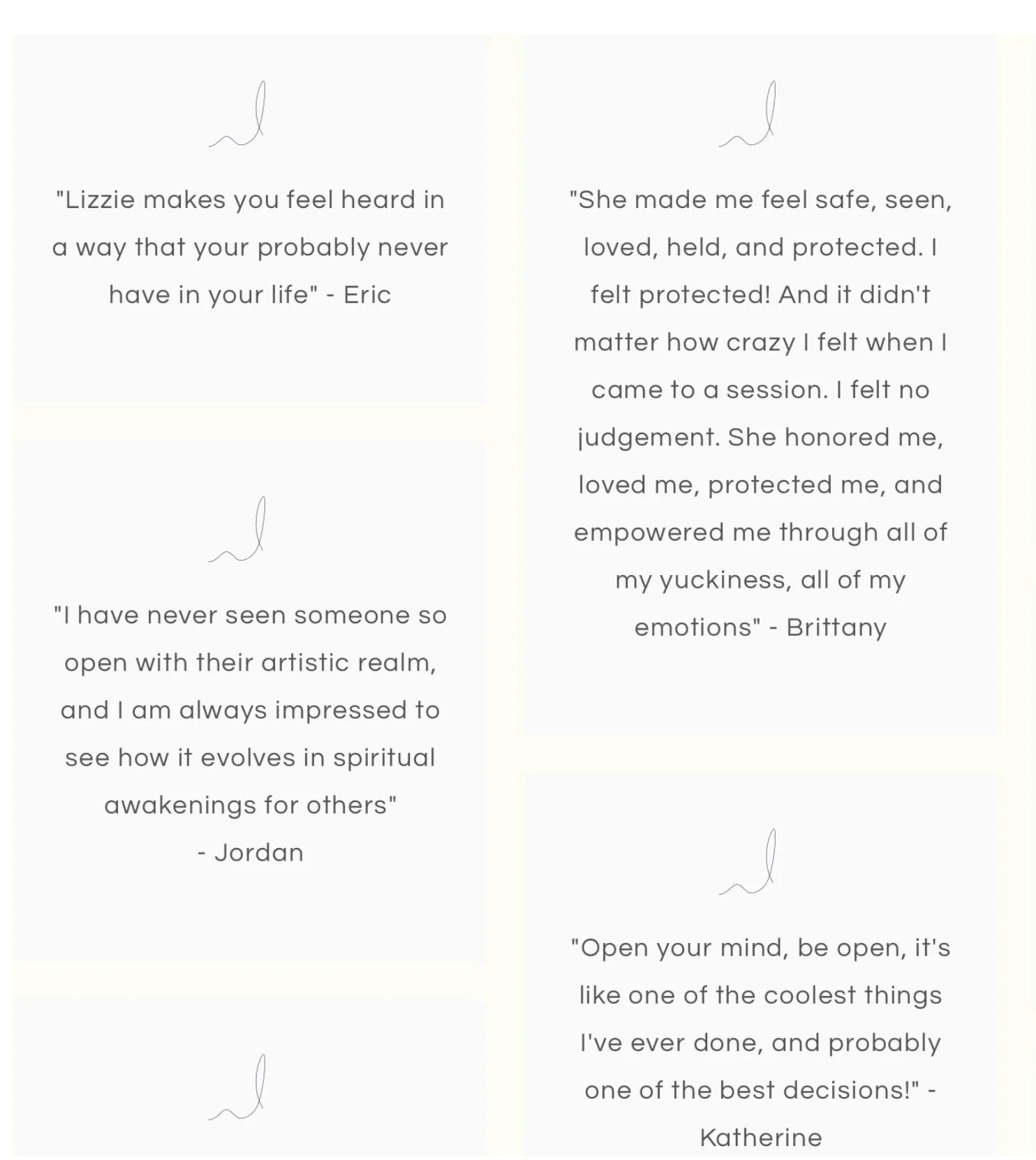 Lizzie has a passion for helping others find their own creative flow and unleash their full potential. She has also traveled the world learning from indigenous medicine people about various healing modalities that she implements into her work. Additionally, Lizzie collaborates with doctors as an energetic practitioner, helping patients to identify underlying patterns behind illness.
