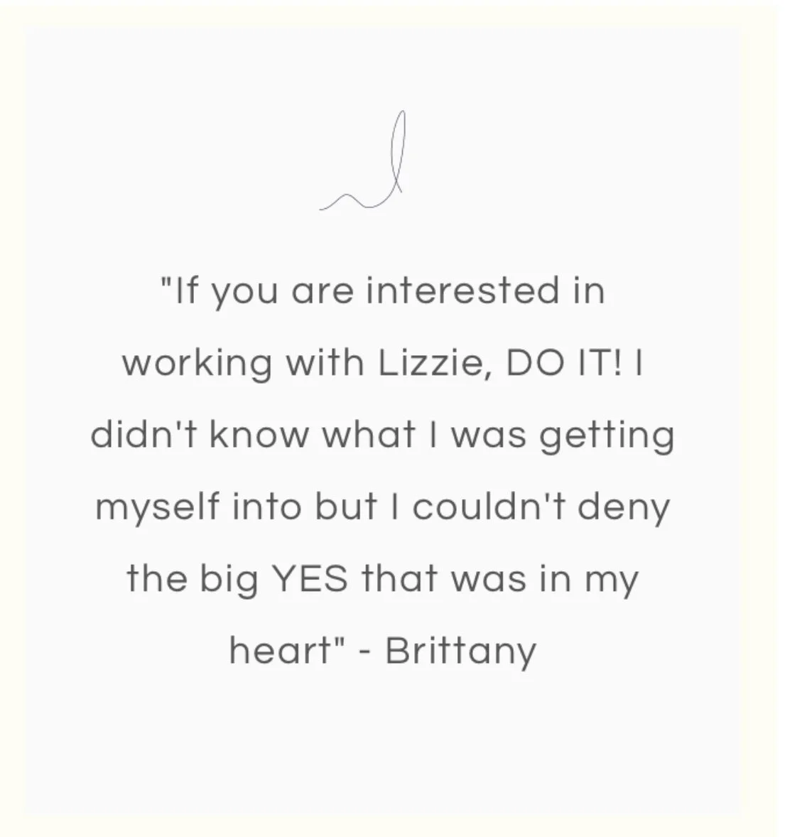 If you are interested in working with Lizzie, email lizzie@lizzieloch.com to set up a consultation call.